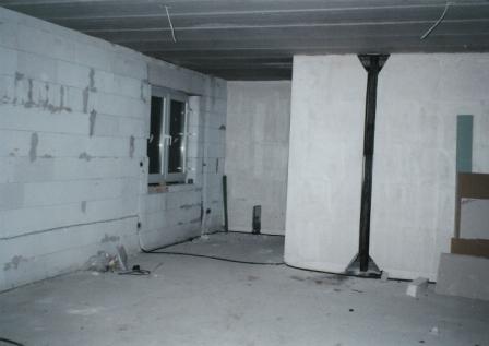 Rohbauzustand, noch bevor der Estrich verlegt wurde.